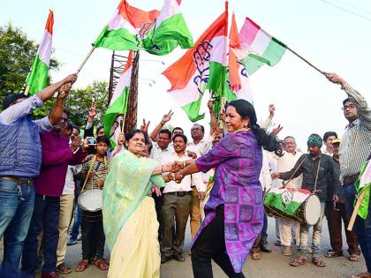 मंगळवारी शहर काँग्रेस कार्यालयात जल्लोषाचे वातावरण सुरू होते. काँग्रेस जसजशी विजयाकडे वाटचाल करीत होती, तसतसे कार्यकर्ते जमायला लागले होते. विजयाचा कौल लक्षात येताच फटाके फोडण्यात आले, मिठाई वाटायला सुरुवात झाली. ढोलताशांचा गजरावर कार्यकर्ते ठेका घेऊ लागले. उत्सवाचे वातावरण निर्माण झाले. यावेळी माजी केंद्रीय राज्यमंत्री विलास मुत्तेमवार, शहराध्यक्ष विकास ठाकरे, प्रदेश सचिव उमाकांत अग्निहोत्री, अतुल कोटोचा, अभिजित वंजारी, ईरशाद अली, महेश श्रीवास, शेख हुसैन, रिंकू जैन, निर्मला बोरकर, अक्षय समर्थ, रमेश पुणेकर, प्रशांत धवड, राजेश पायतोडे, जगदीश गमे यांच्यासह मोठ्या संख्येने कार्यकर्ते सहभागी झाले.