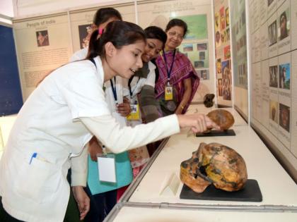 प्रदर्शनात अँथ्रापॉलॉजिकल सर्वे ऑफ इंडियातर्फे मानवाच्या प्रगतीचा आढावा घेणारी माहिती प्रदर्शनात मांडण्यात आली. यात दोन आणि पायावर चालणाऱ्या मानवाच्या मेंदूचा विकास झाल्यानंतर तो दोन पायावर चालू लागला. दगड एकमेकांवर आदळून आग तयार करणे, शेती करण्याचे तंत्र त्याला आत्मसात झाले अन् तो आधुनिक झाल्याचा इतिहास सादर करण्यात आला. याशिवाय भारताच्या विविध भागात शेती करण्याचे प्रकार, अन्न साठविण्याच्या पद्धती, संस्कृती, घरे आदींवर प्रकाश टाकण्यात आला.