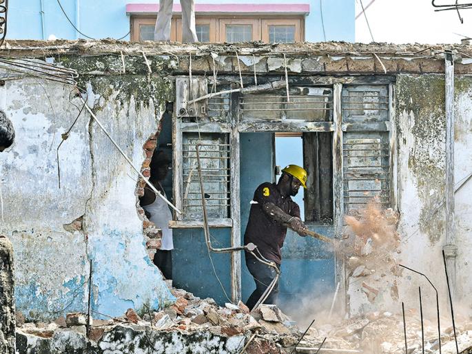 चार मजली जीर्ण इमारत पाडणे सुरू