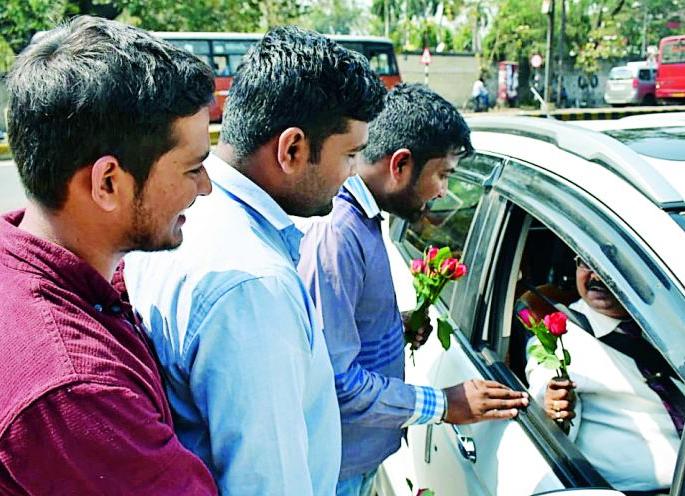 कुलगुरुंविरोधात ‘अभाविप’ची ‘गांधीगिरी’ : गुलाबपुष्प देऊन विधीसभा सदस्यांचे स्वागत