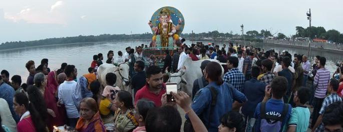 लोकमत न्यूज नेटवर्कनागपूर : गणपती विसर्जनाला सारे काही पारंपरिकच. ढोलताशांचा गजर, गुलालाची उधळण, फटाक्यांची आतिषबाजी मनसोक्त झाली. गणपती बाप्पा मोरया, पुढच्या वर्षी लवकर या... असे आवाहन गणरायाला गणेशभक्तांनी केले. गणपती चालले गावाला, चैन पडेना आम्हाला... या भावनांनी गणरायाला निरोप देण्यात आला. गणरायाला निरोप देताना हळवे झालेले चिमुकल्यांचे चेहरे आणि गणपती बाप्पा मोरयाचा ठसकेबाज जयजयकार करणाऱ्या तरुणांचा उत्साह विसर्जन परिसरात ओसंडून वाहत होता. पण विसर्जन स्थळावर आल्यानंतर, तलाव वाचले पाहिजे याची जाणीवही भाविकांमध्ये दिसून आली. कारण प्रशासनानेही तलावांचे प्रदूषण टाळण्यासाठी पुरेपूर प्रयत्न केले होते. तलावाच्या संपूर्ण परिसरासह शहरातील विविध भागात २५१ कृत्रिम तलाव तयार करण्यात आले होेते. प्रशासनाबरोबरच स्वयंसेवी संस्थांनीही निर्माल्य गोळा करण्यापासून, मूर्ती कृत्रिम तलावात विसर्जन करण्याची जाणीव भाविकांना करून दिली होती. जागोजागी लावण्यात आलेले पर्यावरण रक्षणाचे बॅनर, पोस्टर्स यामुळे गणेशभक्तही नमला आणि प्रदूषणमुक्त विसर्जनाला प्रतिसाद देत, समाधानाने गणरायाचे विसर्जन करून गेला. प्रदूषणमुक्तीचा एक मोठा बदल गेल्या काही वर्षात यंदा दिसून आला.अनंत चतुर्दशीला मोठ्या प्रमाणात होणाऱ्या गणेश विसर्जनाच्या दृष्टीने महापालिकेची यंत्रणा सज्ज झाली होती. शहरातील सोनेगाव, सक्करदरा, गांधीसागर, अंबाझरी या तलावांना तर चारही बाजूने बॅरिकेड लावण्यात आले होते. तलावात एकही मूर्ती जाणार नाही, निर्माल्यातील एक फूलही तलावात पडणार नाही, असे नियोजन प्रशासनाने केले होते. महापालिकेच्या अधिकाऱ्यापासून ७०० कर्मचाऱ्यांनी तलावाचे प्रदूषण टाळण्यासाठी पुरेपूर प्रयत्न केले होते. प्रशासनाच्या मदतीला स्वयंसेवी संस्थांच्या कार्यकर्त्यांचा, महाविद्यालयीन तरुणांचासुद्धा हातभार लागला होता. रात्री उशिरापर्यंत सुरू असलेल्या विसर्जनाच्या सोहळ्यात प्रशासनाचे अधिकारी, कर्मचारी लक्ष ठेवून होते. शहरातील मंडळाच्या मूर्तीच्या विसर्जनासाठी फुटाळा आणि नाईक तलावावर परवानगी देण्यात आली होती. त्यामुळे हे दोन तलाव वगळता नागपुरातील इतर तलावात प्रदूषणमुक्त विसर्जन पार पडले. सोनेगाव तलावात १०० टक्के प्रदूषणमुक्त विसर्जनग्रीन अर्थ आॅर्गनायझेशनने सोनेगाव तलावात १०० टक्के प्रदूषणमुक्त विसर्जनाची संकल्पपूर्ती केली. आमदार प्रा. अनिल सोले, नगरसेवक प्रकाश तोतवाणी, श्रीकांत बोहरे, परमानंद छंगवानी, प्रसाद कापरे, विवेक गाडगे, भोलानाथ सहारे यांच्या सहकार्यातून गेल्या काही वर्षांपासून तलावाच्या काठावरच एका मोठ्या कृत्रिम तलावाची निर्मिती करण्यात आली आहे. मूर्त