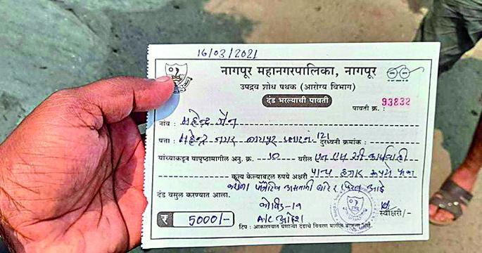 नागपूर : शहरात कोरोनाचे संक्रमण वाढत असतानाही होम आयसोलेशनमध्ये असलेले अनेक जण घराबाहेर फिरत आहेत. कोरोनाबाधितांच्या अशा बेजबाबदार वागण्याला आळा घालण्यासाठी मनपा प्रशासनाने कठोर पावले उचलली आहेत. मंगळवारी मनपाच्या उपद्रव शोध पथकाने होम आयसोलेशनमध्ये असताना घराबाहेर फिरणाऱ्या एका कोरोनाबाधित रुग्णाला ५ हजार रुपयाचा दंड ठोठावला.