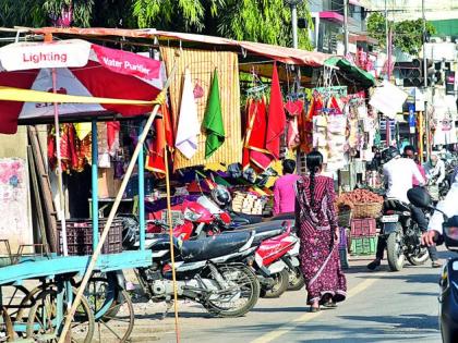 लक्ष्मीभुवन चौकाजवळील भागात तर फूटपाथ काय रस्तादेखील शोधावा लागतो, अशी स्थिती आहे. स्थानिक दुकानदारांनी फूटपाथवर अतिक्रमण केले आहे. तर मुख्य रस्त्यावर दुहेरी तिहेरी ‘पार्किंग’ दिसून येते. रस्त्याच्या दुसऱ्या बाजूला तर फळविक्रेत्यांनी फूटपाथ आपलाच आहे असे समजून त्यावर कब्जाच केला आहे. शिवाय येथील कपड्याच्या दुकानदारांनीदेखील फूटपाथवर आपली मालकी असल्यासारखा उपयोग सुरू केला आहे. एका दुकानदाराने तर चक्क फूटपाथवरच साड्या लावून जाहिरात केली आहे.