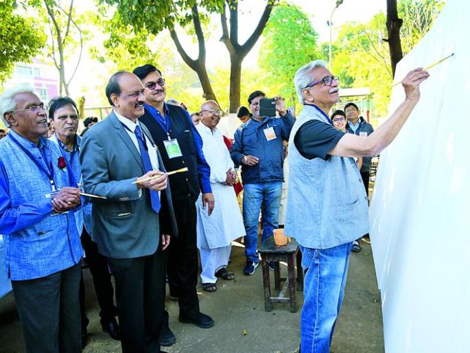 लोकमत न्यूज नेटवर्कनागपूर : भोसलेंचा महाल, शुक्रवारी तलाव, संगमेश्वर मंदिर, मारबत, बडग्या, हरिहर मंदिर किंवा काशीबाईचे देउळ असो हे सर्व नागपूरची ३०० वर्षांच्या वैभवाची ओळख पटविणाऱ्या आहेत. कदाचित नव्या पिढीला हा वारसा माहीत नसेल. मात्र बसोली ग्रुपच्या अनोख्या चित्रप्रकल्पातून या वैभवशाली खुणा कॅनव्हासवर उतरल्या. अगदी गोंडराजांच्या अस्तित्वापासून ते आताच्या मेट्रोपर्यंतचे वैभव शहरातील प्रतिष्ठित मान्यवर व व्यावसायिक चित्रकारांच्या सहभागातून बालचित्रकारांच्या अभिनव कल्पनांनी कॅनव्हासवर साकार झाले.हा अनोखा चित्रप्रकल्प ज्येष्ठ चित्रकार चंद्रकांत चन्ने यांच्या पुढाकाराने बसोली ग्रुप, बालजगत आणि आॅरेंज सिटी कल्चरल फाऊंडेशन व कोकियो कॅमलिन लिमि. मुंबई यांच्या संयुक्त विद्यमाने रविवारी बालजगत, लक्ष्मीनगरच्या परिसरात राबविण्यात आला.‘संत्रानगरी नागपूर कॅनव्हासवर’ हाच या चित्रप्रकल्पाचा विषयही होता. यात शहरातील ७० प्रतिष्ठित मान्यवर आणि ५० व्यावसायिक चित्रकारांसह ७५ बालचित्रकारांनी सहभाग घेतला.सकाळी चित्रपट दिग्दर्शक जब्बार पटेल, ज्येष्ठ चित्रकार प्रमोदबाबू रामटेके, फिल्म गुरू समर नखाते, गिरीश गांधी, बैद्यनाथचे सुरेश शर्मा, विलास काळे, रघू नवरे यांच्या उपस्थितीत या प्रकल्पाचे औपचारिक उद््घाटन करण्यात आले. नागपूरचे गोंडराजा ते मेट्रो असा सांस्कृतिक, राजकीय, धार्मिक, ऐतिहासिक असा प्रवास रंगातून उलगडत गेला. लावा येथील नागनदीचा उगम, चितार ओळ, सावजी हॉटेल, मारबत, बडग्या, हायकोर्ट, गुरुद्वारा, भोसलेकालीन तान्हा पोळा, हाडपक्या गणपती, यशवंत स्टेडियम, टेकडी गणपती, सेमिनरी हिल्स, रामझुला, डॉ. बाबासाहेब आंबेडकर विमानतळ, दीक्षाभूमी, भोसले वेदशाळा, हत्तीनाला, संत्रा मार्केट, मॉडेल मिल, महाराज बाग, व्हीएनआयटी, तेलंगखेडी-अंबाझरी तलाव अशी नागपूरची ओळख असलेल्या ५० विषयांवरील चित्रे कॅनव्हासवर चितारण्यात आली. तीन पिढ्यांचे एकत्रीकरण व त्यांच्यातील संवादाचे चित्रात रूपांतरण महत्त्वाचे ठरले.बालचित्रकारांसह प्रमोदबाबू रामटेके, दीपक जोशी, नाना मिसळ, दीनानाथ पडोळे, राहुल मेश्राम, डॉ. प्रफुल्ल क्षीरसागर, प्रा. अब्दुल गफ्फार अब्दुल सत्तार, संजय मोरे, शशिकांत ढोकणे, प्रा. बाबर शरीफ, गौरी देशपांडे, संजय वलीवकर, सोनाली चौधरी, सदानंद चौधरी, प्रफुल्ल डेकाटे आदी ५० व्यावसायिक चित्रकार आणि विविध क्षेत्रातील ७० प्रतिष्ठित मान्यवरही या रंगसंगतीत हरवून गेले होते.यासाठी मुलांना काही दिवसाअगोदर नागपूरसंदर्भातील विषय देण्यात आले होते. विद्यार्थ्यांनी त्याचे रेफरन्स शोधत ही रंगसंगती साकारली आहे. हे बंधनमुक्त चित्रण महत्त्वाचे आहे. लवकरच या चित्रांचे प्