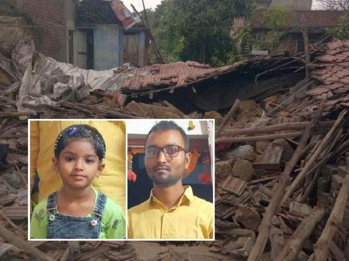 कमलेश गजानन कोठेकर (३२) व यादवी कमलेश कोठेकर (५, रा. हरीहरनगर, कांद्री, कन्हान) अशी मृतांची नावे आहेत. कमलेशने यादवीला दुपारी शाळेतून घरी आणले. यादवी ही कन्हान शहरातील धर्मराज शाळेतील केजी-टूची विद्यार्थिनी हाेती. जेवण केल्यानंतर दाेघेही काैलारू घरात गेले. तिथे कमलेश आराम करीत हाेता, तर यादवी घरात खेळत हाेती. काही वेळात संपूर्ण घर काेसळले आणि घराच्या ढिगाऱ्याखाली दाेघेही दबले गेले. हा प्रकार लक्षात येताच शेजाऱ्यांनी घटनास्थळाकडे धाव घेतली.