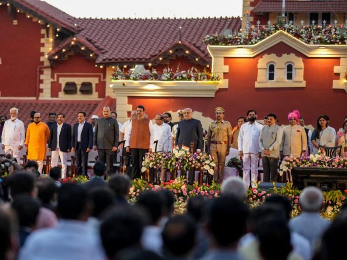 शिंदेसेनेचे संजय राठोड यांनी शपथ घेताना ‘जय जय सेवालाल’चा नारा दिला. जयकुमार रावल यांनी खानदेशी मातीला नमन करीत, छत्रपती शिवाजी महाराजांना वंदन करीत ‘जय श्रीराम’चा गजर केला. पंकजा मुंडे या शपथ घेत असताना समर्थकांनी आली रे आली...महाराष्ट्राची वाघीण आली.., अशा घोषणा दिल्या. राष्ट्रवादीच्या आदिती तटकरे जय श्रीकृष्ण म्हणाल्या. शिवेंद्र राजे भोसले यांनी ‘जय शिवराय’ म्हणत छत्रपती शिवाजी महाराजांना वंदन केले. शिंदेसेनेचे भरतशेठ गोगावले यांनी वंदनीय बाळासाहेब ठाकरे व आनंद दिघे यांच्या स्मृतीला वंदन केले. नितेश राणे यांनी भगवा सदरा घालून शपथ घेतली. यावेळी त्यांच्या समर्थकांनी ‘जय श्रीराम’चा जयघोष केला. भाजपच्या मेघना बोर्डीकर, पंकज भोयर यांनीही ‘जय श्रीराम’चा नारा दिला. राष्ट्रवादीचे मंत्री शपथ घेत असताना समर्थकांकडून अजित दादा, पक्का वादा.., अशी शब्दपूर्तीची घोषणा केली जात होती.