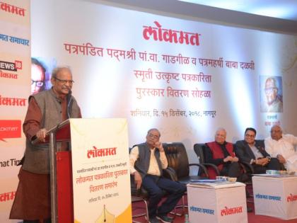 यावेळी विजय दर्डा यांनी स्वागतपर भाषणात ‘लोकमत’चा प्रवास तसेच ज्येष्ठ संपादकांच्या नावांनी देण्यात येत असलेल्या या पुरस्कारांवर प्रकाश टाकला. मागील काही दिवसांपासून देशात भेदभाव निर्माण करण्याचे प्रयत्न होत आहेत. आपण महासत्तेची चर्चा करत असताना असे प्रयत्न देशासाठी योग्य नाहीत. देशात गरिबी, कुपोषण, शेतकरी आत्महत्या, पर्यावरण, शिक्षण यांच्याशी निगडित अनेक महत्त्वाचे प्रश्न आहे. मोठ्या उंचीचा पुतळा आवश्यक की देशातील लोकांच्या मूलभूत गरजा पूर्ण करणे महत्त्वाचे,असा प्रश्न विजय दर्डा यांनी उपस्थित केला. आपल्या शिक्षण पद्धतीवरदेखील विचार झाला पाहिजे. मातृभाषेचा अभिमान असला पाहिजे. मात्र राज्यात मराठी शाळा बंद होत आहेत. मराठी मुलांना आपलीच भाषा येत नाही. मराठी भाषेचा गौरव का जपला जात नाही हा चिंतनाचा विषय आहे. वृत्तपत्रांच्या माध्यमातून ही चळवळ उभी झाली पाहिजे, असे दर्डा यावेळी म्हणाले. ‘लोकमत’ला कॉग्रेसचे मुखपत्र म्हटले जाते. मात्र हे जनतेचे मुखपत्र आहे. कॉंग्रेसचे विचार राष्ट्रीय एकात्मतेचे आहेत. म्हणून आम्ही त्या विचारांचा नेहमीच पुरस्कार केला आहे. ‘लोकमत’चे संस्थापक संपादक व ज्येष्ठ स्वातंत्र्यसेनानी बाबूजी उपाख्य जवाहरलाल दर्डा यांच्याकडून आम्हाला वृत्तपत्र धर्माची शिकवण मिळाली. आम्ही त्याच मार्गावर चालतो आहोत, असेदेखील त्यांनी सांगितले.