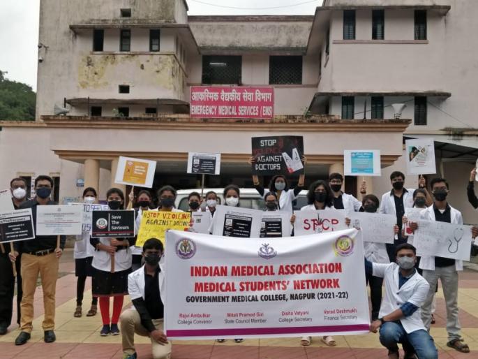 ‘आयएमए’चे अध्यक्ष डॉ. संजय देवतळे, सचिव डॉ. सचिन गाठे यांच्या मुख्य उपस्थितीत आयएमए सभागृहासमोर नारे निदर्शने करण्यात आली. त्यानंतर संविधान चौक, झिरो माईल्स व झाशी राणी चौक सीताबर्डी येथेही हातात फलक घेऊन निदर्शने करण्यात आली. या सोबतच शासकीय वैद्यकीय महाविद्यालय व रुग्णालय (मेडिकल), इंदिरा गांधी शासकीय वैद्यकीय महाविद्यालय व रुग्णालय (मेयो) , राज्य कामगार विमा रुग्णालय, शालिनीताई मेघे रुग्णालयाच्या समोर तेथील निवासी डॉक्टर, वरिष्ठ डॉक्टर व आयएमएच्या सदस्यांनी निदर्शने केली. दुपारी डॉ. देवतळे यांच्या नेतृत्वात जिल्हाधिकारी देवेंद्र ठाकरे यांना मागण्यांचे निवेदनही सादर केले. यावेळी डॉ. देवतळे. डॉ. मिलिंद नाईक, डॉ. वर्षा ढवळे, डॉ. बी.के.शर्मा, डॉ. विंकी रुघवानी, डॉ.मुकुंद गणेरीवाल, डॉ. शहनाज चिमठाणवाला, डॉ. मंजुषा गिरी, डॉ. सत्कार पवार, डॉ. मनिषा राठी, डॉ. संदीप मोगरे, डॉ. अर्चना कोठारी व डॉ. राजेश सावरबांधे उपस्थित होते.