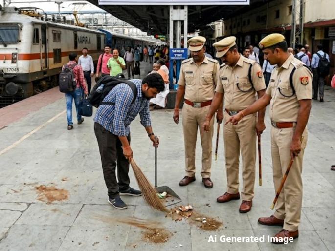 रेल्वे गाड्या आणि रेल्वे स्थानक परिसरात जागोजागी स्वच्छतेचा संदेश बघायला मिळतात. 'कृपया घाण, कचरा करू नका. स्वच्छता राखा', असे हे संदेश असतात अन् त्यासोबतच 'रेल्वे गाड्यात, स्थानकावर, परिसरात घाण कचरा करणे, धूम्रपान करणे कायद्यानुसार गुन्हा आहे. त्यासाठी तुम्हाला शिक्षा होऊ शकते,' असेही नमूद असते. मात्र, त्याला अनेक बेपर्वा प्रवासी जुमानत नाही, ते बिनधास्त खर्रा, पान खाऊन जागोजागी पिचकाऱ्या मारतात. विड्या, सिगारेटचे धूर तोंडातून सोडून उग्र दर्प पसरवतात. यामुळे अनेकांच्या आरोग्यावर परिणाम होतात. अशा बेशिस्त प्रवाशांपैकी मोजक्या जणांना पकडून आरपीएफ किंवा जीआरपीचे जवान त्यांच्यावर दंड ठोकतात. ही रक्कम किरकोळ, अर्थात २०० रुपये असल्याने प्रवासी त्याला जुमानत नाही. ते पुन्हा पुन्हा हा गुन्हा करतात. ते लक्षात घेऊन आता अशा प्रवाशांना धडा शिकविण्यासाठी दंड आकारण्याऐवजी ‘सार्वजनिक सेवा’ करण्याची शिक्षा देण्याचा निर्णय रेल्वेने घेतला आहे.