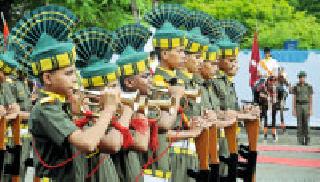 जय हिंद की सेना : ‘कारगील विजय’ ही भारतीय सैन्याची शौर्यगाथा. हा दिवस प्रत्येक भारतीयांची मनात सैन्यांप्रति आदर वाढविणारा. भोसला मिलिटरी स्कूलच्या वतीने सिव्हिल लाईन्स येथील डॉ. वसंतराव देशपांडे सभागृहात मंगळवारी ‘कारगील विजय दिवस’ साजरा करण्यात आला. यावेळी शहिदांना मानवंदना देताना जवान.