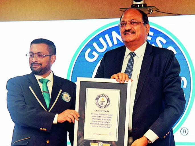 गिनीज बुक ऑफ वर्ल्ड रेकॉर्डच्या लंडन मुख्यालयातील जज आणि निर्णायक ऋषीनाथ यांनी मंगळवारी व्हीआयपी रोडवरील मेट्रो भवनमध्ये आयोजित समारंभात महामेट्रोचे व्यवस्थापकीय संचालक डॉ. बृजेश दीक्षित यांना गिनीज बुक ऑफ वर्ल्ड रेकॉर्डचे प्रमाणपत्र सोपविले. या यशाबद्दल याआधी एका समारंभात केंद्रीय मंत्री नितीन गडकरी यांनी एनएचएआय आणि महामेट्रो टीमचे अभिनंदन केले आहे.