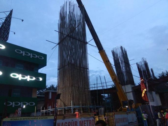 नागपुरात मेट्रो पिलरच्या सळाखींचा ढाचा झुकला