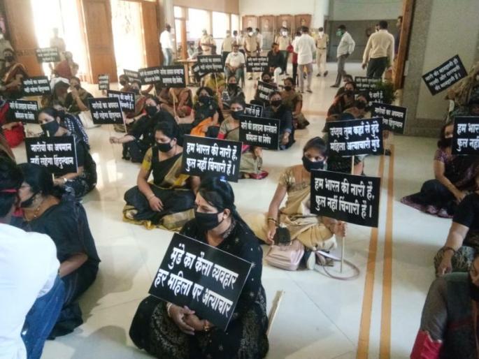 लोकमत न्यूज नेटवर्कनागपूर : स्मार्ट सिटी कॉर्पोरेशनच्या सेक्रेटरी यांना मनपा आयुक्त तुकाराम मुंढे यांच्याकडून अपमानास्पद वागणूक देऊन छळ करण्यात आला. त्यांना प्रसूती काळातील रजा नाकारण्यात आली. तसेच अन्य महिला अधिकाऱ्यांनाही मुंढे यांनी अपमानास्पद वागणूक दिली, असा अरोप करीत सत्ताधारी भाजपच्या महिला नगरसेविकांनी बुधवारी महापालिका मुख्यालयातील आयुक्तांच्या कक्षापुढे काळे मास्क व काळा वेश परिधान करून ठिय्या आंदोलन करीत ‘मुंढे साहेब, महिलांचा सन्मान करा!’ अशा आशयाचे फलक झळकावले. आंदोलनाच्या पार्श्वभूमीवर महापालिका कार्यालय परिसरात पोलिस बंदोबस्त ठेवण्यात आला होता. स्मार्ट सिटी कॉर्पोरेशनच्या महिला सेक्रेटरी यांनी राष्ट्रीय महिला आयोगाकडे यासंदर्भात तक्रार केली आहे. याची दखल घेत आयोगाने आयुक्त मुंढे यांना नोटीस बजावून स्पष्टीकरण मागितले आहे. प्रसूती कालावधीत महिलांना रजा घेण्याचा अधिकार असतानाही मुंढे यांनी भानुप्रिया ठाकूर यांना रजा नाकारून त्यांना मानसिक त्रास दिला. महापालिकेत ५० टक्के महिला नगरसेविका आहेत. महिला कर्मचारी व अधिकाऱ्यांची संख्या मोठ्या प्रमाणात आहे. आयुक्तांनी महिलांचा सन्मान करावा, अशी भूमिका उपमहापौर मनीषा कोठे व मनपातील सत्ता पक्षाच्या प्रतोद दिव्या धुरडे यांनी मांडली. आंदोलनात नगरसेविका प्रगती पाटील, वर्षा ठाकरे, रूपा रॉय, संगीता गिऱ्हे, रिता मुळे, उषा पॅलट यांच्यासह मोठ्या प्रमाणात नगरसेविका सहभागी झाल्या होत्या.नगरसेविका गुन्हेगार नाहीतलोकांनी आम्हाला निवडून दिले आहे. त्यांच्या समस्या सोडविण्याची जबाबदारी आमच्यावर आहे. महापालिका आयुक्तांकडून आम्हाला चांगली वागणूक मिळावी. आम्ही गुन्हेगार नाही, अन्यथा आम्ही गप्प बसणार नाही, असा इशारा नगरसेविकांनी यावेळी दिला.