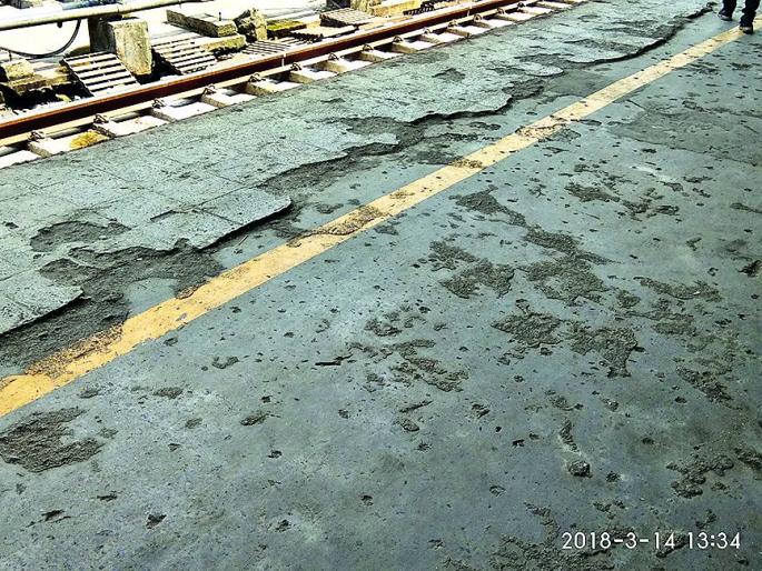 लोकमत न्यूज नेटवर्कनागपूर : नागपूर रेल्वेस्थानकाला वर्ल्ड क्लास बनविण्याची तयारी सुरू असताना रेल्वेस्थानकावरील प्लॅटफार्मची अवस्था वाईट झाली आहे. प्लॅटफार्मवर खड्डे पडले असून टाईल्स तुटल्या असून प्रवासी अडखळून पडण्याची शक्यता आहे. मध्य रेल्वेच्या महाव्यवस्थापकांच्या दौऱ्यानंतर रेल्वेस्थानकावरील विकास कामे ठप्प झाल्याचे चित्र पाहावयास मिळत आहे.नागपूर रेल्वेस्थानकावरील समस्यांची पाहणी केली असता प्लॅटफार्म क्रमांक दोन आणि तीनवर अनेक खड्डे पडलेले असून जागोजागी टाईल्स उखडल्याचे चित्र दृष्टीस पडले. अशा स्थितीत प्रवाशांना रेल्वेगाडीत बसण्याची कसरत करावी लागत आहे. अनेकदा खड्ड्यात अडखळल्यामुळे प्रवाशांना किरकोळ जखमा होतात. एवढेच नाही तर प्लॅटफार्म क्रमांक चार आणि पाचवर टाईल्स लावण्यात आली. परंतु त्याचे सिमेंटीकरण करण्यात आलेले नाही. वर्षभरापूर्वी प्लॅटफार्म क्रमांक एकवर लावण्यात आलेल्या ग्रेनाईटलाही २५ ठिकाणी तडा गेल्याचे चित्र आहे. प्रवाशांना रेल्वेगाडीपासून दूर ठेवण्यासाठी टाईल्सने बनविण्यात आलेली पिवळी लाईनही अनेक ठिकाणी उखडली आहे.