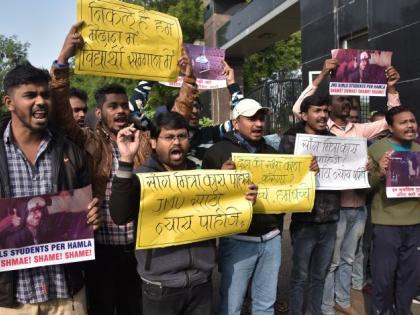 नागपूर : ‘जेएनयू’मध्ये प्राध्यापक व विद्यार्थ्यांवर झालेल्या हल्ल्याचे पडसाद मंगळवारी राष्ट्रसंत तुकडोजी महाराज नागपूर विद्यापीठातदेखील उमटले. या मुद्द्यावरुन सकाळच्या सुमारास विद्यार्थी संघटनांनी अमरावती मार्गावरील विद्यापीठाच्या ‘कॅम्पस’च्या प्रवेशद्वाराजवळ आंदोलन केले. डॉ.बाबासाहेब आंबेडकर विद्यार्थी संघटनेतर्फे केंद्र शासनाविरोधात निदर्शने करण्यात आली. तर अखिल भारतीय विद्यार्थी परिषदेने डाव्या पक्षांचेच हे षडयंत्र असल्याचा आरोप करत आंदोलन केले. दोन्ही विद्यार्थी संघटनांंचे कार्यकर्ते एकाच ठिकाणी असल्याने तणावाचे वातावरण निर्माण होण्याची शक्यता होती. परंतु पोलिसांचा तगडा बंदोबस्त असल्याने शांततामय पद्धतीने आंदोलन झाले.
