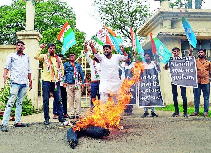 राष्ट्रवादी विद्यार्थी काँग्रेसकडून कुलगुरूंचा पुतळा जाळला
