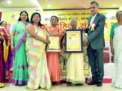 कार्यक्रमाच्या दुसऱ्या सत्रात संस्कृत पंडिता म्हणून ओळख असलेल्या संस्कृत भाषा प्रचारिणी सभेच्या अध्यक्षा डॉ. लीना रस्तोगी यांना ज्ञानयोगी पुरस्कार देऊन गौरविण्यात आले. तत्पूर्वी साहित्य संमेलनाच्या स्मरणिकेचे प्रकाशन डॉ. पंकज चांदे यांच्या हस्ते करण्यात आले. स्मरणिकेच्या संपादक डॉ. अर्चना अलोणी यांनी भूमिका विशद करताना स्मरणिकेत विदर्भाच्या प्राचीन व आधुनिक इतिहासासह धार्मिक, सांस्कृतिक व साहित्याचा संपूर्ण लेखाजोखा मांडण्यात आल्याचे सांगितले. डॉ. पंकज चांदे यांनी भाषेवर संकट आल्याची भीती व्यक्त केली. साहित्याच्या बाबतीत केवळ पुणे, मुंबई म्हणजे महाराष्ट्र समजले जात असल्याने, विदर्भातील साहित्याची उपेक्षा होत असल्याची खंत व्यक्त केली. डॉ. माधुरी वाघ यांनी या सत्राचे संचालन केले. यानंतरच्या सत्रात ‘कवितेचा गाव’ या कार्यक्रमातून प्राचीन, अर्वाचीन व आधुनिक काव्यरचना प्रकारांची संगीतमय प्रस्तुती झाली.