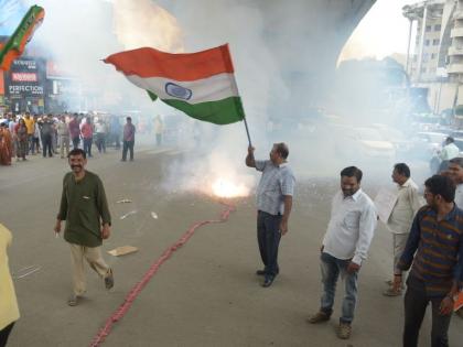 दुपारी १ वाजता राष्ट्रीय स्वयंसेवक संघ तसेच भाजपाच्या पदाधिकाऱ्यांनी व्हेरायटी चौकात आनंदोत्सव साजरा केला. यावेळी फटाक्यांची आतषबाजी, मिठाईचे वाटप, ढोलताशांचा गजर असे चित्र होते. अनेक लोकप्रतिनिधीदेखील ताल धरुन नाचताना दिसून आले. याशिवाय दिवसभरात विश्व हिंदू परिषद, अखिल भारतीय विद्यार्थी परिषद, शिवसेना यांच्यातर्फेदेखील जल्लोष साजरा करण्यात आला.