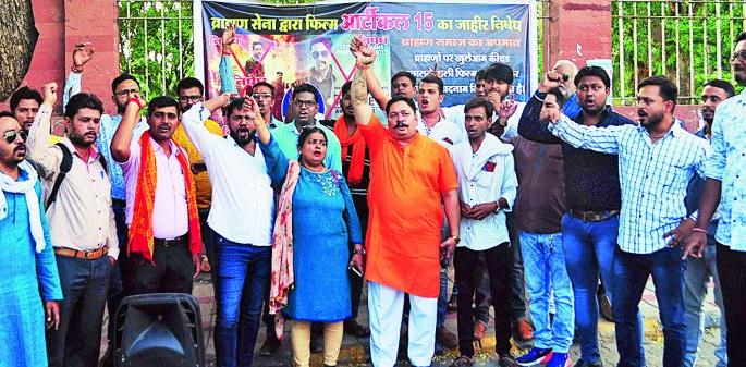 ब्राह्मण सेना फाऊंडेशन व राजपूत करणी सेनेतर्फे ‘आर्टिकल १५’ या चित्रपटाच्या विरोधात शनिवारी संविधान चौकात निदर्शने केली.