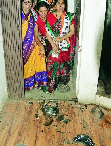 ठळक मुद्दे राष्ट्रवादीने फोडले भाजपा कार्यालयात मडके : महिला काँग्रेसची निदर्शने : शिवसेनेची राजीनाम्याची मागणी
