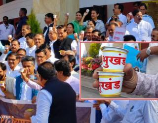'गुजरातला फॉक्सकॉन, महाराष्ट्राला पॉपकॉर्न'; श्रीखंडाचे डबे घेऊन विरोधक आक्रमक