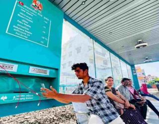 नागपूर : नागपूरचा पहिला ‘स्मार्ट’ बसस्टॉप बेलतरोडीमध्ये सुरू; चार्जिंग, आराम, आणि फॅन