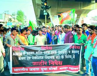 नागपूर : नागपुरात भाजयुमोने जाळला वारीस पठाण यांचा प्रतिकात्मक पुतळा
