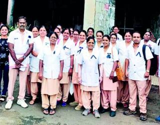 नागपूर : मेडिकल : काळी रिबीन बांधून परिचारिकांची रुग्णसेवा