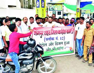 घ्या, आले ना चांगले दिवस..? काँग्रेस कार्यकर्त्यांनी दर्शविला इंधन दरवाढीचा विरोध