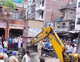 शोभायात्रेच्या मार्गावरील अतिक्रमण हटविताना तणाव