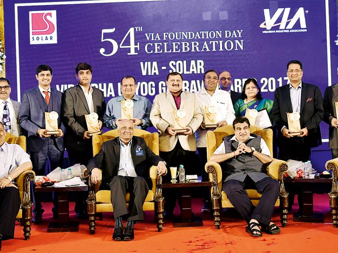 विदर्भ इंडस्ट्रीज असोसिएशनचा (व्हीआयए) ५४ वा स्थापनादिन रामदासपेठ येथील हॉटेल सेंटर पॉर्इंटमध्ये शनिवारी पार पडला. यावर्षीपासून सुरू करण्यात आलेल्या ‘व्हीआयए-सोलर उद्योग गौरव पुरस्कार-२०१७’मध्ये विदर्भाच्या ११ जिल्ह्यातील मध्यम व लघु उद्योजकांना सात वर्गवारीत नितीन गडकरी यांच्या हस्ते पुरस्कार प्रदान करण्यात आले. व्यासपीठावर खासदार अजय संचेती, सोलर समूहाचे चेअरमन सत्यनारायण नुवाल आणि व्हीआयएचे अध्यक्ष अतुल पांडे होते.