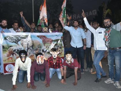 महाराजबागेच्या बचावासाठी युवक काँग्रेसच्या वतीने अनोखे आंदोलन करण्यात आले. वन्यप्राण्यांचे मुखवटे लावून युवक काँग्रेसच्या कार्यकर्त्यांनी महाराजबाग परिसरात आंदोलन करीत, सांगा आम्ही जावे कुठे? असा सवाल महाराजबाग प्रशासनाला केला. कार्यकर्त्यांनी यावेळी प्रचंड घोषणाबाजी देत, महाराजबागेच्या बचावासाठी शेवटपर्यंत लढा देण्याचा संकल्प केला. ‘नही चलेंगी नही चलेंगी, तानाशाही नही चलेंगी’ अशा घोषणा सरकार आणि महाराजबाग प्रशासनाच्या विरोधात दिल्या. नगरसेवक बंटी शेळके यांच्या नेतृत्वात हे आंदोलन करण्यात आले होते. यावेळी युवक काँग्रेसचे महेश बालपांडे, आकाश गुजर, रोनाल्ड मेश्राम, जॉन अगस्टिन, वसिम खान, हिमांशू मेश्राम, अधिकांश मेश्राम, शाहीद खान, फजलूर रेहमान कुरेशी, अजहर शेख, आकाश चौरीया, तुषार मदने, निखिल कापसे, तनवीर अहमद विद्रोही, तौसिफ खान उपस्थित होते.