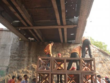 शनिवार दुपारपासूनच पुलाखालील वाहतूक बंद करण्यात आली आहे. या पुलाला कठड्याचा आधार दिला गेला असून, २ इंचाची फट ज्या ठिकाणी आली आहे ती दुरुस्त करून पुढील २ दिवस त्याच्या देखरेखीचे काम केले जाणार आहे.