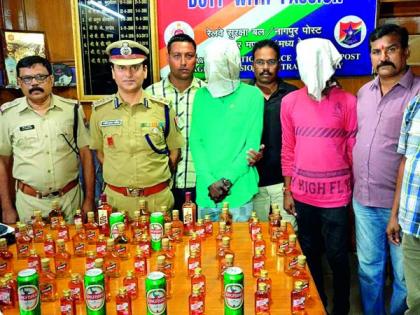 रेल्वे सुरक्षा दलाचे उपनिरीक्षक गौरीशंकर एडले, जवान विकास शर्मा, विवेक कनोजिया सोमवारी दुपारी २.३० वाजता प्लॅटफार्म क्रमांक २ वर गस्त घालत होते. तेवढ्यात १२६२२ तामिळनाडू एक्स्प्रेसच्या समोरील जनरल कोचमध्ये त्यांना दोन व्यक्ती संशयास्पद स्थितीत आढळल्या. त्यांची चौकशी केली असता त्यांनी आपले नाव राहुल चंद्रभोगली कुत्तावर (२५) रा. साईबाबा वॉर्ड, बल्लारशा आणि रोशन गौरीशंकर परिहार (२२) रा. मैसदेही, बैतुल असे सांगितले. त्यांच्या जवळील बॅगची तपासणी केली असता त्यात दारूच्या ९५५० रुपये किमतीच्या ८१ बॉटल आढळल्या. दुसऱ्या कारवाईत प्लॅटफार्म क्रमांक २/३ वर दुपारी ४ वाजता इटारसी एण्डकडील भागात विवेक कनोजिया यास एक बेवारस बॅग आढळली. बॅगची तपासणी केली असता त्यात दारूच्या १४१० रुपये किमतीच्या २६ बॉटल आढळल्या. जप्त केलेली दारू आणि आरोपींना राज्य उत्पादन शुल्क विभागाच्या सुपुर्द करण्यात आले.