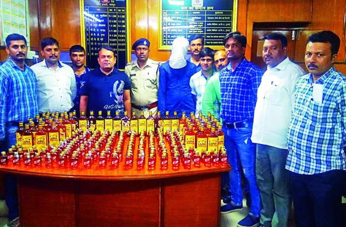 लोकमत न्यूज नेटवर्कनागपूर : रेल्वे सुरक्षा दलाने बुधवारी सायंकाळी ६ वाजता संघमित्रा एक्स्प्रेसमध्ये दारूची तस्करी करणाऱ्या आरोपीस अटक करून त्याच्याजवळून ३१ हजार ८०० रुपये किमतीच्या दारूच्या २४० बॉटल्स जप्त केल्या आहेत.रेल्वे सुरक्षा दलाचे वरिष्ठ विभागीय सुरक्षा आयुक्त भवानी शंकर नाथ यांनी मादक पदार्थांची तस्करी रोखण्यासाठी गठित केलेल्या चमूतील आरपीएफ जवान कामसिंह ठाकूर, जसवीर सिंह, अनिल कुमार, शेख शकील, बी. बी. यादव हे १२२९६ संघमित्रा एक्स्प्रेसमध्ये कर्तव्यावर होते. त्यांना पांढुर्ण्यावरून एक जण संशयास्पद स्थितीत गाडीत बसलेला दिसला. त्याने आपले नाव नीलेश विठ्ठल जगने (२७) रामटेक, जि. नागपूर असे सांगितले. त्याच्याजवळील बॅगची तपासणी केली असता त्यात दारूच्या २४० बॉटल्स होत्या. त्याला आरपीएफ ठाण्यात आणून उपनिरीक्षक होतीलाल मिना यांच्यासमोर हजर करण्यात आले. कागदोपत्री कारवाईनंतर निरीक्षक रवी जेम्स यांच्या आदेशानुसार आरोपीला मुद्देमालासह राज्य उत्पादन शुल्क विभागाच्या स्वाधीन करण्यात आले.