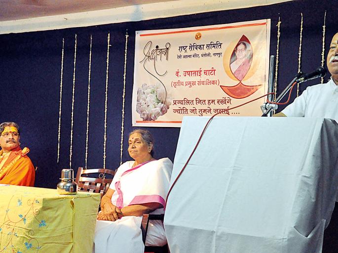 सरसंघचालकांनी यावेळी उषाताई चाटींच्या आठवणींना उजाळा दिल्या. विद्यार्थी असतानापासून त्यांच्या घरी जायचो. संघाच्या अनेक बैठका त्यांच्या घरी व्हायच्या व त्यांनी बनविलेल्या गोळाभाताची प्रतीक्षा असायची. कारण त्यात चवीसोबतच त्यांचे वात्सल्य सामावले असायचे. जम्मूला एका कार्यक्रमादरम्यान माझ्या आईच्या निधनाची बातमी समजली. ही बाब फारशी कुणाला माहीत नव्हती. जम्मूहून रेल्वेत बसल्यावर त्याच गाडीतून परतणाºया उषाताई माझ्याजवळ आल्या. तू जेवण कर, कारण येथून तुला थेट चंद्रपूरला जायचे आहे, असे त्यांनी म्हटले. त्यांना सर्वकाही कळले होते, मात्र चेहºयावर दु:खाचे भाव न दाखविता त्यांनी मला आधार देण्याचे काम केले. त्यांचे मायेचे बोल हृदयाला स्पर्शून गेले होते, असे सरसंघचालकांनी सांगितले.