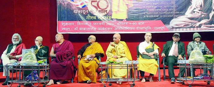 लोकमत न्यूज नेटवर्कनागपूर : धम्मदूत भदन्त संघरत्न मानके कठोर तप करून भिक्खू झाले. त्यांनी भारतात आणि जपानमध्ये बौद्ध धम्माचा प्रचार-प्रसार करण्यासाठी महत्वाची भूमिका बजावली. ते भारत-जपान यांच्यातील मैत्रीचा दुवा आहेत, असे प्रतिपादन मान्यवर वक्त्यांनी केले.धम्मदूत भदन्त संघरत्न मानके प्रवज्जीत जीवनाचा स्वर्णमहोत्सवी गौरव समारंभाचे आयोजन दीक्षाभूमी येथील डॉ. बाबासाहेब आंबेडकर सभागृहात करण्यात आले. अध्यक्षस्थानी भारतीय भिक्खुसंघाचे संघानुशासक भदन्त सदानंद महास्थवीर होते. प्रमुख पाहुणे म्हणून तिब्बती कॅम्प गोठणगाव येथील भदन्त लोबसांग तेन्पा, निप्पोंझा म्योहोजि शांती स्तूप वर्धाचे भदन्त मिकिओ आसाई, सुप्रसिद्ध विचारवंत डॉ. भाऊ लोखंडे, पय्या मेत्ता संघाचे उपाध्यक्ष डॉ. बालचंद्र खांडेकर, औद्योगिक विकास महामंडळाचे आयुक्त डॉ. हर्षवर्धन कांबळे, दीक्षाभूमी स्मारक समितीचे विश्वस्त विलास गजघाटे, गुरुदेव युवा मंचाचे ज्ञानेश्वर रक्षक, सामाजिक कार्यकर्ते भीमराव वैद्य, मिलिंंद फुलझेले उपस्थित होते. यावेळी बोलताना भदन्त सदानंद महास्थवीर म्हणाले, एकुलता एक मुलगा धम्माला दान देऊन सच्चिदानंद आणि सीताबाई मानके यांनी बाबासाहेब आंबेडकरांच्या चळवळीतील दायित्व प्रामाणिकपणे निभावले. अशीच भावना समाजाने ठेवण्याची गरज आहे. डॉ. भाऊ लोखंडे यांनी मुलगा दान देण्याचे सच्चिदानंद मानके यांचे कार्य सम्राट अशोकाच्या परंपरेतील असल्याचे मत व्यक्त केले. भन्ते धम्मशिखर यानी संघरत्न मानके यांनी आपल्याला बुद्ध धम्मात स्थापन केल्याचे सांगितले. माजी न्यायाधीश महेंद्र गौतम यांनी संघरत्न मानके यांचे धम्मासाठी मोलाचे योगदान असल्याचे मत व्यक्त केले. डॉ. हर्षवर्धन कांबळे यांनी भिक्खू प्रशिक्षण केंद्र ठिकठिकाणी उभारण्याची गरज असल्याचे प्रतिपादन केले. डॉ. बालचंद्र खांडेकर यांनी संघरत्न मानके यांनी अहोरात्र परिश्रम घेऊन बुद्ध धम्माचा प्रचार-प्रसार केल्याची माहिती दिली. पत्रकार मिलिंंद फुलझेले, तुका कोचे यांनीही यावेळी आपले मनोगत व्यक्त केले. सत्काराला उत्तर देताना संघरत्न मानके म्हणाले, प्रत्येकाने आपल्यातील बुद्ध उभारला पाहिजे. देशातील बुद्ध अवशेषांपैकी ३० टक्के अवशेष महाराष्ट्रात आहेत. बाबासाहेबांनी महाराष्ट्रातच धम्मदीक्षा दिली. त्यामुळे परकीय बौद्धांपुढे हात न पसरता स्व:तच्या बळावर धम्म गतिमान करण्याचे आवाहन त्यांनी केले. संचालन डॉ. वीणा राऊत यांनी केले. आभार संध्या राजुरकर यांनी मानले.