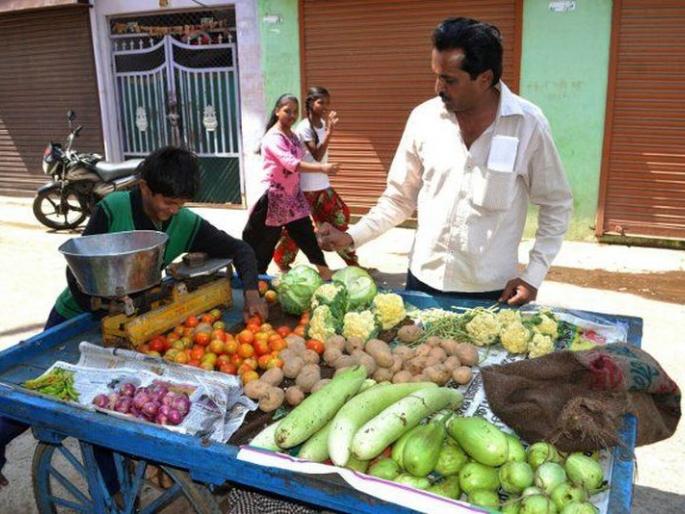 विक्रेत्यांची नागपुरातील मोहल्ल्यात फिरून भाज्यांची विक्री