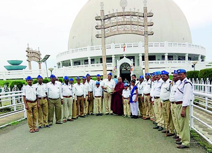 नागपूर : धम्मचक्र प्रवर्तन दिनाच्या निमित्ताने दीक्षाभूमीवर देशाच्या कानाकोपऱ्यातून आंबेडकरी अनुयायी येतात. हातात निळे झेंडे आणि मुखातून होणाऱ्या बाबासाहेबांच्या गजराने एक उत्साह ओसंडून वाहत असतो. लाखो अनुयायी एकाच ठिकाणी येत असल्याने कुठलीही विपरीत घटना घडू नये, प्रत्येक जण सुरक्षित असावा, यासाठी डोळ्यात तेल घालून सलग चार दिवस दीक्षाभूमीवर समता सैनिक दलाचे सैनिक तैनात असतात. निळी टोपी, पांढरा शर्ट, खाकी पॅन्ट आणि हातात काठी हा गणवेशधारी सैनिक दीक्षाभूमी परिसरात प्रत्येक ठिकाणी आपली जबाबदारी सांभाळत असतो. यावर्षी देशाच्या कानाकोपऱ्यातील अडीच ते तीन हजार सैनिक दीक्षाभूमीवर आपली सेवा व सुरक्षा पुरविणार आहेत.१९२७ च्या त्या काळात समाजात अस्पृश्यावर अन्याय, अत्याचार होतच होते. सगळा समाज विषमतेत जळत होता. बाबासाहेबांच्या चळवळीमुळे समाजात जागृती होत होती. शेकडो वर्षे मान खाली घालून चालणारे लोक मान वर करू लागले होते. माणसे मुक्तीच्या वाटा चालू लागली होती. सवर्णांना हे आवडणे शक्य नव्हते, हे स्वाभिमानाचे नवे वारे होते आणि त्याचा परिणाम म्हणून गावागावात अस्पृश्यावर हल्ले होण्याचे प्रमाण वाढले. अशावेळी गावागावातील लोकांच्या रक्षणासाठी, चळवळीची ताकद वाढविण्यासाठी आणि महाडच्या सत्याग्रहाच्या यशस्वितेसाठी डॉ. बाबासाहेब आंबेडकर यांनी १९ मार्च १९२७ रोजी महाडला एक परिषद भरविली होती. या परिषदेत समता सैनिक दलाची स्थापना करण्यात आली. समता सैनिक दलाच्या उपस्थितीमुळे आंबेडकरी चळवळीतील अनेक कार्यक्रम सुखरूपपणे पार पडले. चवदार तळ्याचा सत्याग्रह, नाशिकचा सत्याग्रह, १९५६ सालचा बाबासाहेबांचा नागपुरातील धर्मांतरण सोहळा असो किंवा नामांतराचा लढा, १९८७ मधील दंगल असो की घाटकोपर दंगल प्रत्येक वेळी समता सैनिक दलाने महत्त्वपूर्ण कामगिरी बजाविली. आजही दीक्षाभूमीच्या व्यवस्थेसाठी हे सैनिक तेवढ्याच प्रेरणेने झटतात. समता सैनिक दलाचे राष्ट्रीय जीओसी प्रदीप डोंगरे म्हणाले, भदन्त नागदीपंकर थेरो यांच्या मार्गदर्शनात समता सैनिक दलाचे राष्ट्रीय अध्यक्ष डी. कोेचे, एम. आर. राऊत यांच्या नेतृत्वात दीक्षाभूमीवर होणाऱ्या ६२ व्या धम्मचक्र प्रवर्तन दिनाच्या सोहळ्यात आपली सेवा व सुरक्षा व्यवस्था बजावण्यासाठी देशातून अडीच हजार सैनिक येणार आहेत. यात महाराष्ट्रासह दिल्ली, छत्तीसगड, मध्य प्रदेश, आंध्रप्रदेश, उत्तर प्रदेश, बिहार, राजस्थान, तामिळनाडू येथूनही सैनिक येतात.सुरक्षेसोबतच सहकार्यहीसमता सैनिक दलाचे अतिरिक्त महासचिव पृथ्वी मोटघरे यांनी सांगितले, १६ ते १९ आॅक्टोबर असे सलग चार दिवस समता सैनिक दलाचे सैनिक दीक्षाभूमीच्या परिसरात अनुयायांना सेवा दिली जाणा