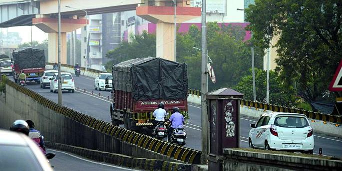 अगोदर रात्रीच्या सुमारास जड वाहने उड्डाण पुलाचा वापर करताना दिसून यायची. मात्र आता तर चक्क वर्दळीच्या वेळी दिवसादेखील जड वाहनांची वाहतूक होते. आश्चर्याची बाब म्हणजे यांचा वेगदेखील जास्त असतो. तरीदेखील या वाहनांवर कुठलीही कारवाई होत नाही. वाहतूक पोलिसांचे याकडे साफ दुर्लक्ष होत आहे.