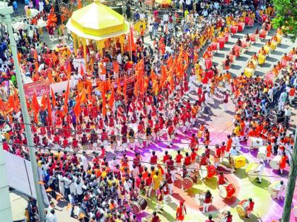 जय भवानी, जय शिवाजीचा गजर, ढोलताशांची गर्जना सोबतच भव्य पालखी यात्रा काढण्यात आली होती. ज्यात हजारो शिवभक्त हातात भगवा ध्वज घेऊन जयघोष करीत होते. शोभायात्रेच्या मार्गावर जागोजागी पुष्पवर्षा करण्यात येत होती. सकाळी ६ वाजता पालखी यात्रा काढण्यात आली. त्यानंतर अतिथींच्या उपस्थितीत महाराजांचे अभ्यंगस्नान करण्यात आले. १५१ महिलांतर्फे महाआरती करण्यात आली. या पालखी सोहळ्यादरम्यान मर्दानी आखाडातर्फे थरारक सादरीकरण करण्यात आले. यात लहान मुले व वृद्धांनीही