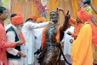 महाल परिसर दुमदुमला : शिवशाहीर बाबासाहेब पुरंदरेंची उपस्थिती नागपूर : महाराष्ट्राचे लाडके दैवत असलेल्या छत्रपती शिवाजी महाराजांच्या शिवराज्याभिषेक सोहळ्याने आज नागपुरातील शिवभक्तांच्या डोळ्याचे पारणे फेडले. शिवराज्याभिषेक सोहळा समितीच्यावतीने शिवाजी चौक, गांधीगेट महाल येथे हा सोहळा शिवराज्याभिषेक दिनानिमित्त आयोजित करण्यात आला. शास्त्रोक्त वेदमंत्रांच्या उच्चारणात शिवाजींच्या राज्याभिषेकाचे एतिहासिक महत्त्व जपताना पार पडलेला हा सोहळा आपण थेट शिवाजी महाराजांचा खराखुराच राज्याभिषेक अनुभवीत असल्याचा भास निर्माण करणारा होता. याप्रसंगी वातावरणात कमालीचा उत्साह आणि आनंद पसरला. या कार्यक्रमाला शहरातील आबालवृद्ध मोठ्या संख्येने उपस्थित होते. त्यात शिवशाहीर बाबासाहेब पुरंदरे, सद्गुरुदास महाराज, राजे मुधोजी भोसले, राजे संग्रामसिंग भोसले, ज्ञानेश्वर पुरंदरे, सुमंत टेकाडे, नगरसेवक बंडू राऊत, नगरसेविका प्रभा जगनाडे, रश्मी फडणवीस, प्रभाकरराव भोसले प्रामुख्याने उपस्थित होते. या सोहळ्याच्या माध्यमातून शिवाजी महाराजांचे चरित्र सामान्यांपर्यंत पोहोचावे म्हणून या सोहळ्याचे आयोजन २४ शिवप्रेमी संघटनांनी एकत्रितपणे केले होते. शिवराज्याभिषेक सोहळा संपूर्ण महाराष्ट्रात रायगड व नागपूर अशा दोनच जागी आयोजित करण्यात येतो. या सोहळ्याचा प्रारंभ सकाळी ७.३० वाजता करण्यात आला. शिवाजी महाराजांची पालखी टिळक पुतळा येथून काढण्यात आली. ११ ब्राह्मणांच्या वैदिक मंत्रघोषाने व पंचामृताने महाराजांना स्नान घालण्यात आले. त्यानंतर नजराणाही दाखविण्यात आला. याप्रसंगी सर्र्वांनीच मंगलवेश धारण केला होता. शिवकालीन क्रीडा प्रात्यक्षिकांनी या सोहळ्याला रंगत आणली. स्व. चिमासाहेब भोसले व्यायाम शाळेच्या विद्यार्थ्यांनीही प्रात्यक्षिके सादर केली. याप्रसंगी विविध प्रकारच्या शस्त्रांचे प्रात्यक्षिक सादर करण्यात आले. यात मोठ्या संख्येने मुलींनीही क्रीडा प्रकार सादर केले. हा सोहळा यशस्वी करण्यासाठी दत्ता शिर्के, महेश महाडिक, रणजित जोशी, दिलीप दिवटे, श्रीकांत देहाडराय, सुधीर अभ्यंकर, विवेक पोहाणे, श्याम तांबोळी, प्रवीण घरजाळे, रोहन सावंत, पंकज पराते, नीलेश पंडाग्रे, भूषण वानखेडे, सचिन वाघाडे, विशाल देवकर, जय आस्कर, आनंद कोतेवार, अभिजित डायगव्हाणे, प्रसाद काळे, आकाश ठाकरे, सुहास माहूरकर, क्षितिज नवघरे, संकेत बांगडकर, सानिध्य लटोर, शुभम पेकडे, भागवत तिवारी, अनंता नरसापूरकर, पराग सपाटे, अतुल ढाकरे, कुशांक गायकवाड, श्रद्धा पाठक, श्वेता भोसले, ऋचा शिर्के, श्वेता दहीकर यांनी परिश्रम घेतले. (प्रतिनिधी)