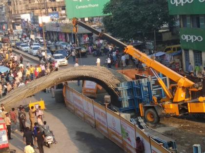 नागपुरातील भर गर्दीच्या म्हणून ओळखल्या जाणाºया मध्यवर्ती सीताबर्डी भागातून जात असलेल्या मेट्रोच्या बांधकामातील एक मोठा पिलर शुक्रवारी दुपारच्या सुमारास अचानक कोसळला.