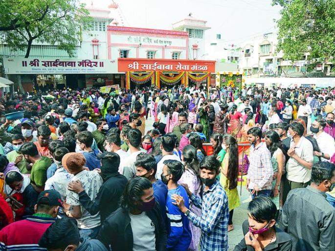 २०२१ वर्षाला निरोप दिल्यानंतर शुक्रवारी प्रत्येक धर्मीयांनी आपापल्या आराध्यांच्या स्थळी जाऊन दर्शन घेतले. नवे वर्ष सुख, संपन्नतेचे असावे.. अशी प्रार्थना प्रत्येकाने आराध्य देवतेपुढे केली. भगवंताच्या चरणी सुख-समृद्धीची मागणी करताना आवश्यक असलेले पथ्य पाळणे मात्र भाविकांनी टाळले. शहरातील प्रत्येकच देवस्थानांमध्ये उसळलेल्या गर्दीतून ही बाब स्पष्ट झाली. कोरोनाच्या तिसऱ्या लाटेची चुणूक दरदिवशी दुपटीने वाढत असलेल्या संक्रमितांवरून दिसायला लागली आहे. संक्रमणाच्या गेल्या दोन लाटा मार्च-एप्रिलमध्ये धडकल्या होत्या. मात्र, तिसरी लाट अनपेक्षितरित्या डिसेंबरच्या अखेरच्या आठवड्यापासूनच धडकल्याची स्थिती निर्माण झाली आहे. पुढे स्थिती अवघड होईल, अशा शंकाही वर्तविल्या जात आहेत. याबाबत शासन-प्रशासन आपल्यापरीने नागरिकांना सजग करण्याचे प्रयत्न करत आहे. मात्र, त्या प्रयत्नांना नागरिकांकडूनच दाद मिळत नसल्याने, अनायासे नागरिक स्वत:च शहराला लॉकडाऊनकडे नेत असल्याची स्थिती यावरून दिसून येते.