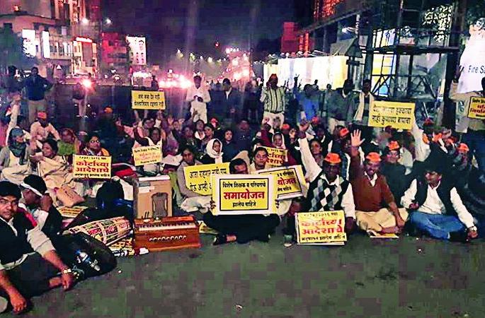 लोकमत न्यूज नेटवर्कनागपूर : अपंग समावेशित शिक्षक योजनेंतर्गत कार्यरत २००९ नंतरचे १३५८ विशेष शिक्षक व परिचर यांचे स्थानिक स्वराज्य संस्थाच्या शाळेतील रिक्तपदी सामान्य शिक्षक म्हणून किंवा शासनाच्या इतर सेवेत समायोजन करण्यात यावे या मागणीसाठी महाराष्ट्र राज्य शिक्षक समन्वय समितीच्यावतीने गुरुवारी विधिमंडळावर मोर्चा काढण्यात आला. जोपर्यंत ही मागणी पूर्ण होत नाही, तोपर्यंत मोर्चाचे ठिकाण सोडणार नाही, असा निर्धार करीत मोर्चेकरी उशिरा रात्रीपर्यंत रस्त्यावरच ठाण मांडून होते.गतिमंद मुलांना समाजाच्या मुख्य प्रवाहात आणण्यासाठी शासनाने विशेष शिक्षकांना कायमस्वरुपी नियुक्ती दिली. परंतु पुढे विशेष शिक्षकांचे युनिट बंद करण्यात आले. यामुळे जीवनव्यापन कसे करावे या चिंतेत हे शिक्षक आहे. विशेष शिक्षक व परिचर न्यायालयात गेले. उच्च न्यायालय औरंगाबाद खंडपीठाने शासनाकडून झालेली सेवा समाप्तीची कारवाई रद्द ठरवित त्यांना पुनर्प्रस्थापित करण्याबाबत महत्त्वपूर्ण निर्देश दिले. परंतु अद्यापही उपाययोजना झाल्या नाहीत. समितीच्यावतीने गेल्या आठ वर्षांपासून आंदोलन केले जात आहे, परंतु आश्वासनाशिवाय काहीच हाती लागले नाही. यामुळे गुरुवारी संतापलेल्या मोर्चेकऱ्यांनी मागण्या पूर्ण होईपर्यंत मोर्चाची जागा सोडणार नाही, असे म्हणत रस्त्यावरच ठाण मांडले.नेतृत्व समितीचे अध्यक्ष शिल्पा कोंडे, उपाध्यक्ष अन्वर शेख, मनोज नागमोते, विनोद नाकाडे, श्रीवंत शेंडे, सचिन रेड्डी.मागण्या