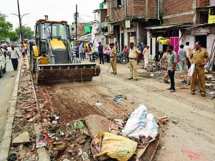 मोमीनपुरा ते अन्सारपुरा मार्गावरील अतिक्रमण हटविताना महापालिकेच्या अतिक्रमण विरोधी पथकाला लोकांच्या विरोधाला सामोरे जावे लागले. कारवाईला विरोध करीत अतिक्रमण करणाऱ्यांनी मंगळवारी दुपारी २.३० वाजताच्या सुमारास दगडफेक केल्याने जेसीबीची काच फुटली. पोलिसांनी दगडफेक करणाऱ्यांना ताब्यात घेतल्यानंतर पोलीस बंदोबस्तात तणावाच्या वातावरणात येथील अतिक्रमणावर बुलडोजर चालविण्यात आला.