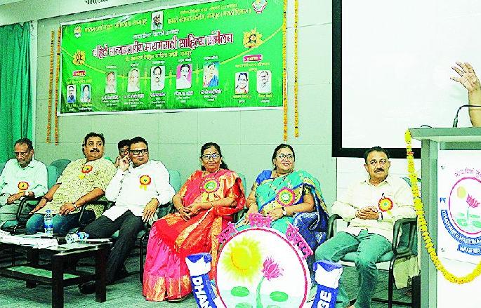 मायमराठी नक्षत्र प्रतिष्ठानच्यावतीने धनवटे नॅशनल कॉलेजच्या मातोश्री विमलाबाई देशमुख सभागृहात आयोजित पहिल्या मायमराठी राज्यस्तरीय संमेलनाच्या समारोपीय सत्रात अध्यक्षस्थानातून निंबाळकर बोलत होते. यावेळी व्यासपीठावर संमेलनाध्यक्ष डॉ. श्रीपाल सबनीस, जिल्हाधिकारी आर. विमला, कादंबरीकार डॉ. रवींद्र शोभणे, विष्णू मनोहर, डॉ. दत्तात्रय वाटमोडे, डॉ. विजया मारोतकर, विशाला देवतळे, डॉ. वडते, डॉ. भारती खापेकर उपस्थित होते.