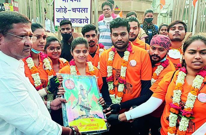शनिवारी सकाळी महाल येथील छत्रपती शिवाजी महाराज यांच्या पुतळ्याला अभिवादन करून मुला-मुलींचे पथक रायगडकडे रवाना झाले. या माेहिमेत वर्षा घाटोळे, रक्षा राहुलकर, प्रियंका वैद्य, धनश्री भोयर, निहारिका लांडगे या मुलींसह सुमित शरणागत, अविनाश कटरे, शुभम मुंडले, निशांत निंदेकर, अनिरुद्ध सोलट यांचा सहभाग आहे. स्त्री सशक्तीकरण, शिवरायांवरील स्वामिनिष्ठा व जीवन कार्याचा प्रसार, सायकलिंगला प्रोत्साहन, गडकिल्ल्याबद्दल जनजागृती, नैसर्गिक साधन संपत्तीचे संवर्धन, पाणी वाचवा पाणी जिरवा, झाडे लावा झाडे जगवा आणि प्रदूषण टाळा हा संदेश देण्यासाठी सायकल मोहीम आरंभल्याचे या टीमने सांगितले. माध्यम लाेकसेवा प्रतिष्ठानने त्यांच्या माेहिमेला सहकार्य केले.