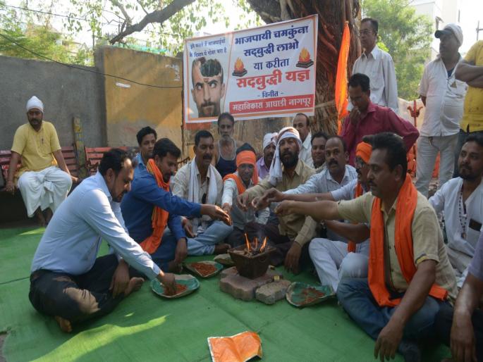 वज्रमुठ सभेसाठी दर्शन कॉलनीचे मैदान देण्यावरून राजकीय वातावरण तापले होते. वाद न्यायालयापर्यंत झाला. मात्र, त्यानंतरही जंगी सभा झाल्याने महाविकास आघाडीच्या नेत्यांचा उत्साह वाढला आहे. अशातच सभेनंतर सोमवारी स्थानिक नागरिक मैदान बचाव समिती आणि भाजपच्या पदाधिकाऱ्यांनी मैदानाची स्वच्छता करून गोमूत्र शिंपडून मैदानाचे शुद्धीकरण ही केले होते. त्यामुळे काँग्रेस कार्यकर्तेही सरसावले. प्रत्युत्तर देत भाजपवाल्यांना सद्बुद्धी यावी म्हणून मैदानाजवळच सद्बुद्धी यज्ञ केला.