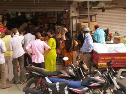 आवश्यक वस्तूंच्या खरेदीसाठी गर्दी वाढल्याने सोशल डिस्टन्सिंगचा फज्जा.